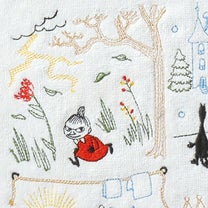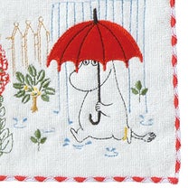 ムーミンストーリーを全面刺繍で描いた豪華なタオルハンカチです。