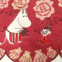 赤いタオルにムーミンママが育てているバラと貝殻の柄がとっても可愛い♪