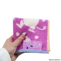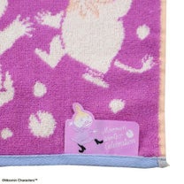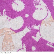 ポップな紫色と雪の中で踊るムーミンが可愛いミニタオルです。