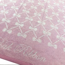 ピンクにリボンの柄をあしらっておりとっても可愛らしいデザインのタオルとなっております!