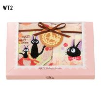 果物やジャム、お花などのモチーフとジジの足跡が可愛らしい「魔女の宅急便」のタオルギフトです。