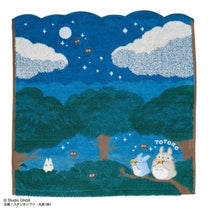 夜空の中トトロたちがオカリナを吹いているデザインのタオルです。