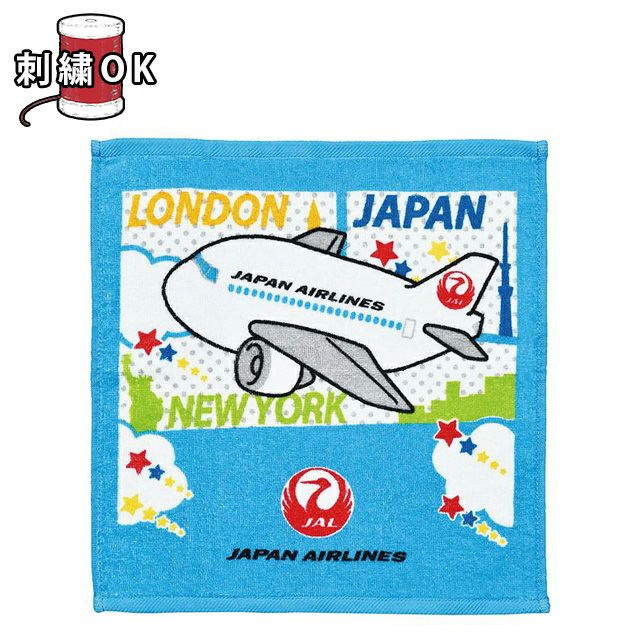 JALの飛行機がポップで楽しいデザインでプリントされたタオルです。