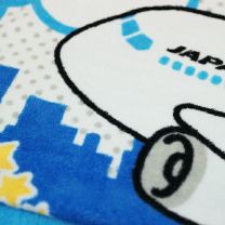 JALの飛行機がポップで楽しいデザインでプリントされたタオルです。