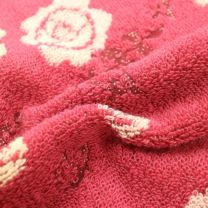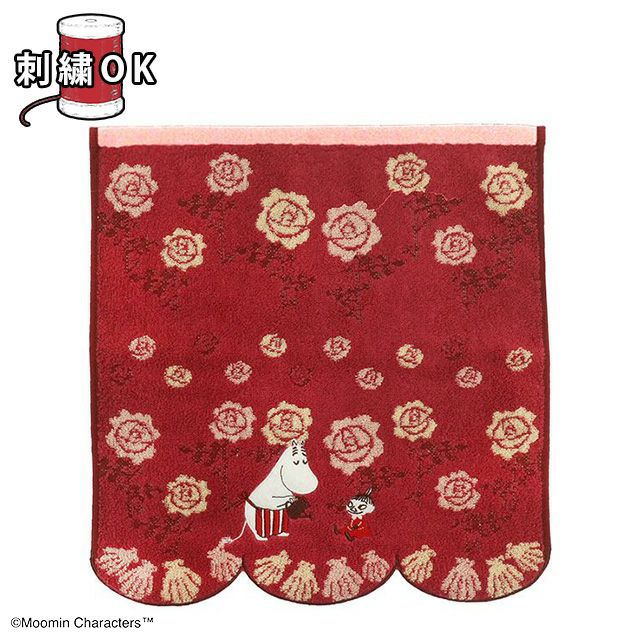 赤いタオルにムーミンママが育てているバラと貝殻の柄がとっても可愛い♪