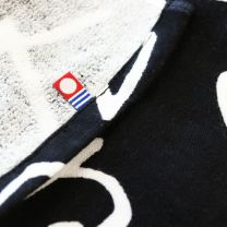 表面ガーゼ、裏面パイル、染料プリント、織りネーム、今治ネーム付き
