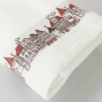 タウンアートを朱子ボーダーに入れ、デザインのアクセントに♪