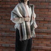 [ひざ掛けOPIST] MOON ストライプチェックブランケット テラコッタ