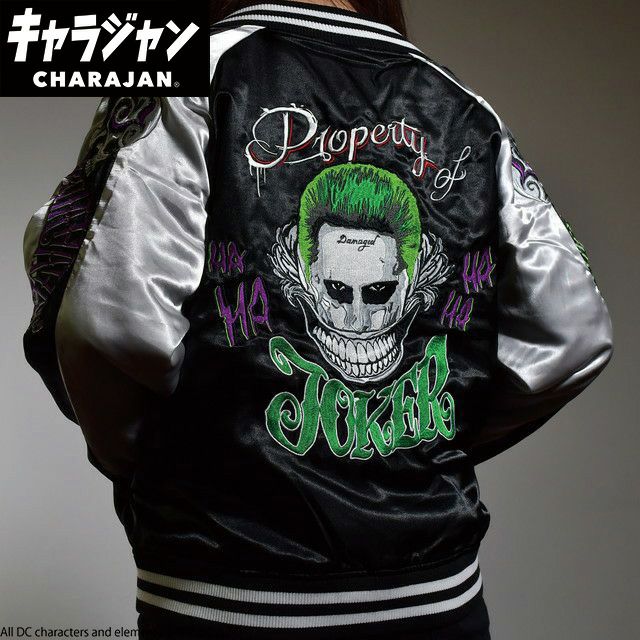 ジョーカーデザインのダークでカッコいいファンにはたまらないスカジャンです。