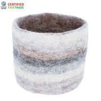 [スモールバスケット] ネパール フェルト雑貨 シリンダー・スモールバスケット グレーボーダー
