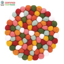 [鍋敷き] ネパール フェルト雑貨 ポコポコラウンド レッド